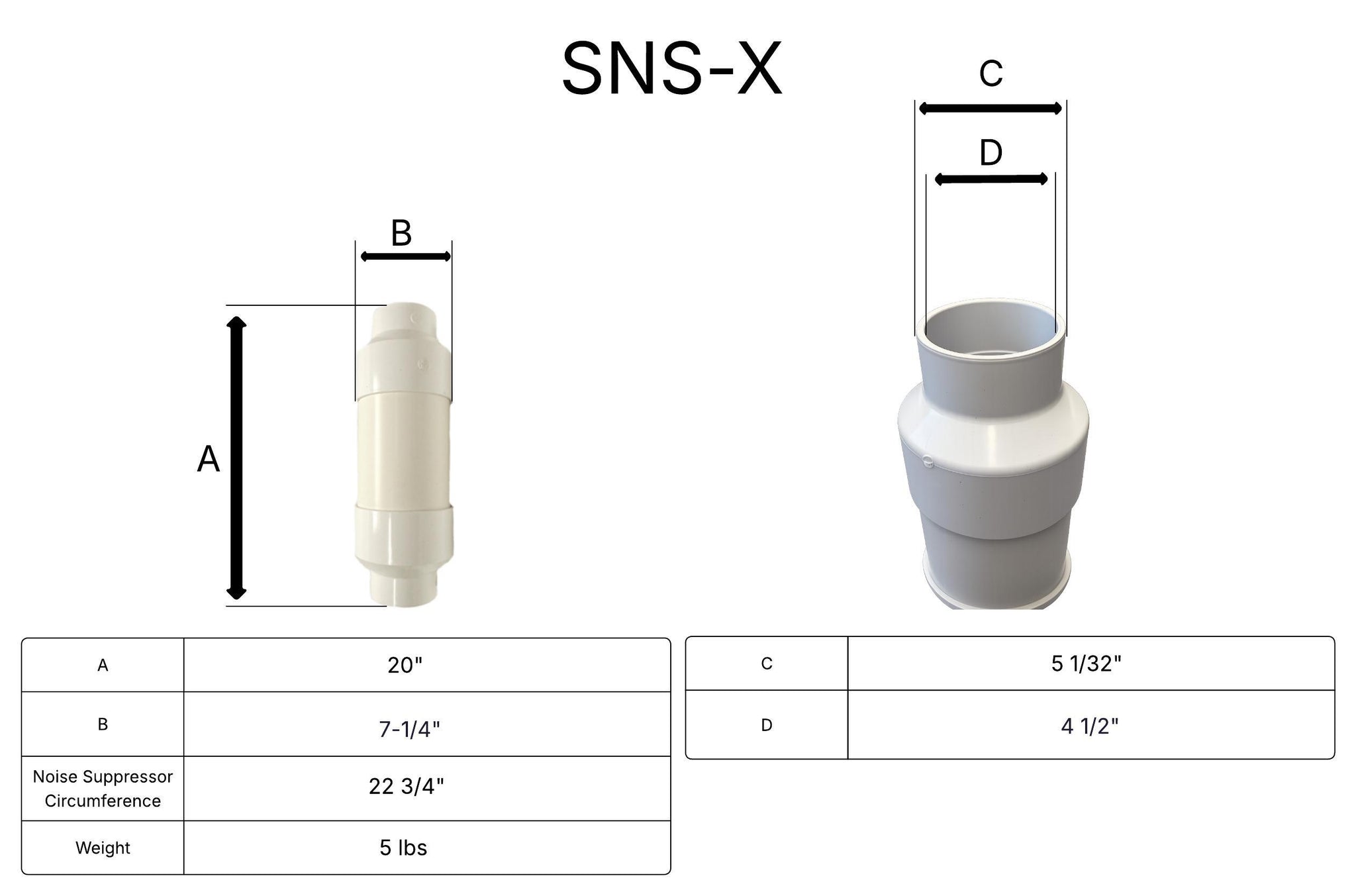 The SNS-X is designed for both Schedule 20 and Schedule 40 PVC. Step-down bushings must be purchased separately for 4-inch Schedule 20 PVC.